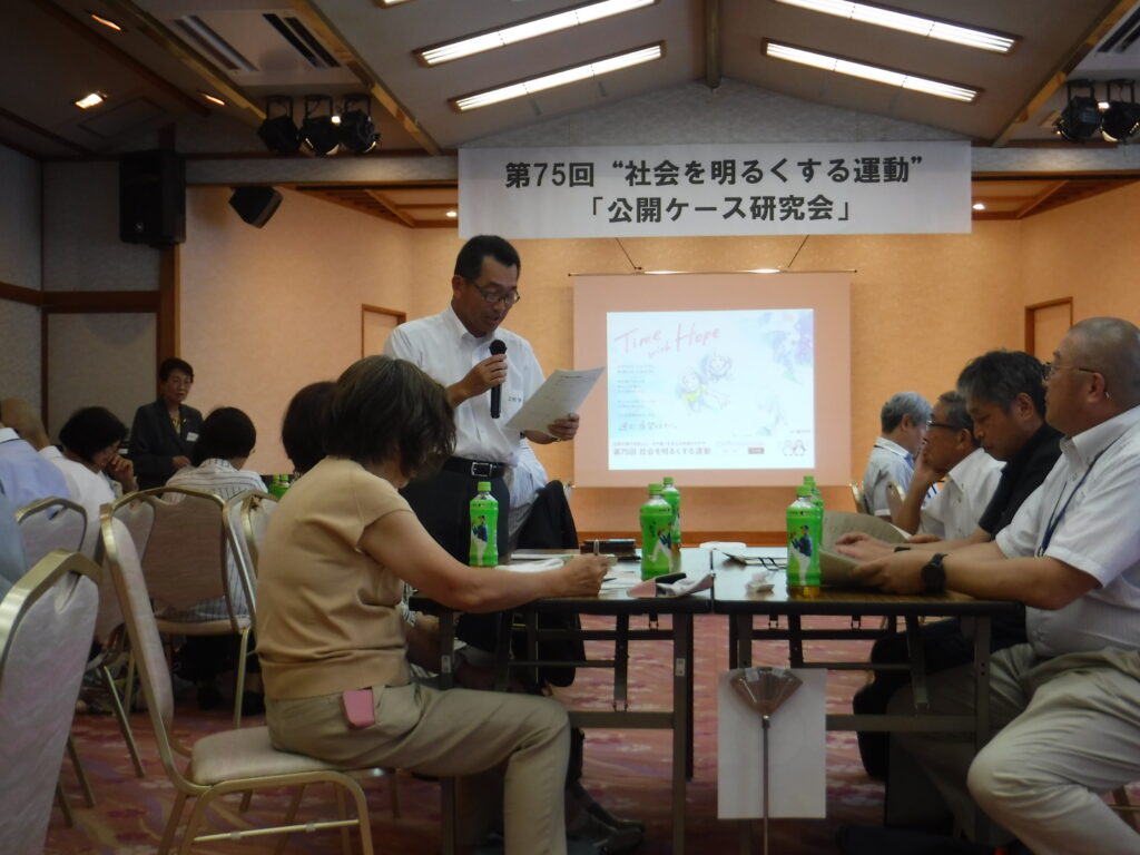 令和7年7月18日(金曜日)、林屋旅館様において、「第75回“社会を明るくする運動”公開ケース研究会」を開催し、保護司や更生保護女性会員、学校関係者、ライオンズクラブ会員等60名が参加しました。